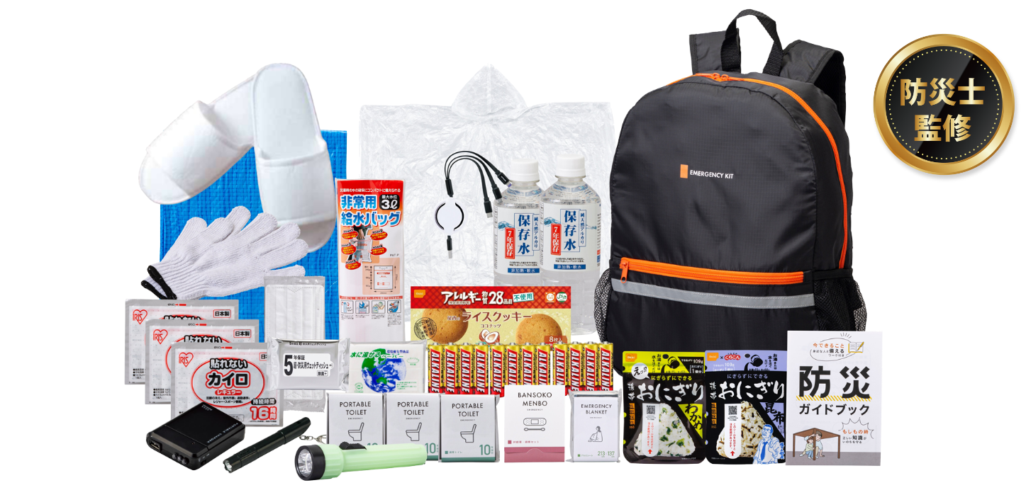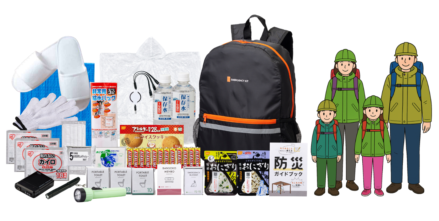 発災後、避難先で少しでも安心して過ごすための「非常用持ち出し袋」。